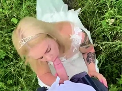 Blonde girl wanted to fuck in the woods and tastes the cum