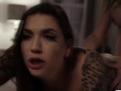 Tattooed babe gets her pussy licked and banged by TS stepsis