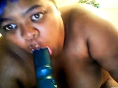 Big Beautiful Black Babe Plays with Dildo on Webcam