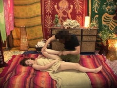 Brunette Teen Girl Tanning her Tight Shaved Pussy